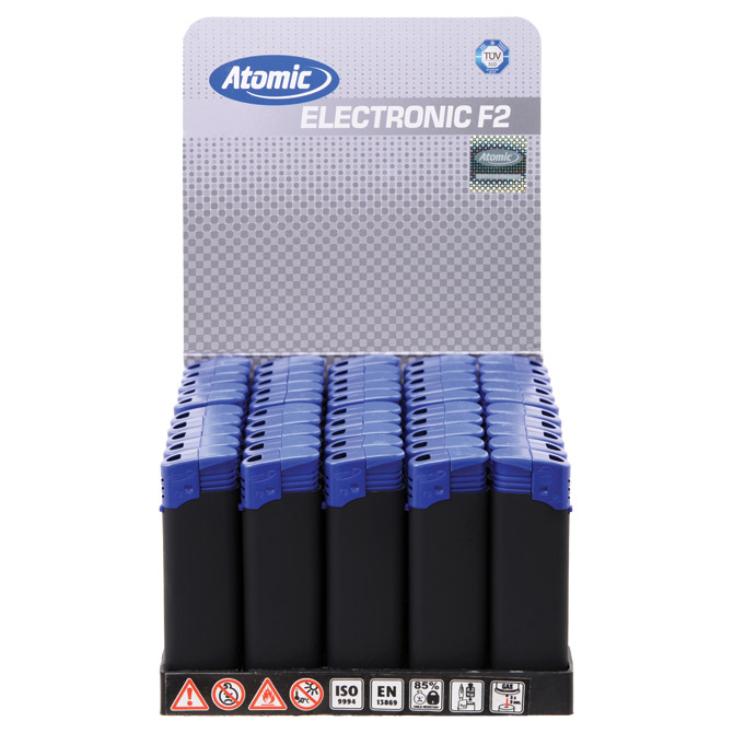 Upaljač elektronski gumirani mat Atomic F2 Rubber crno/plavi